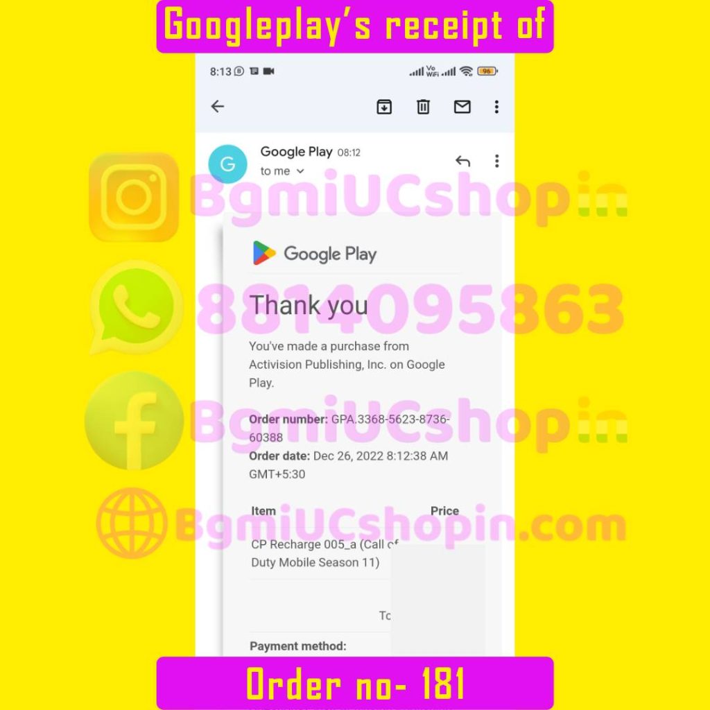 Order no : 181