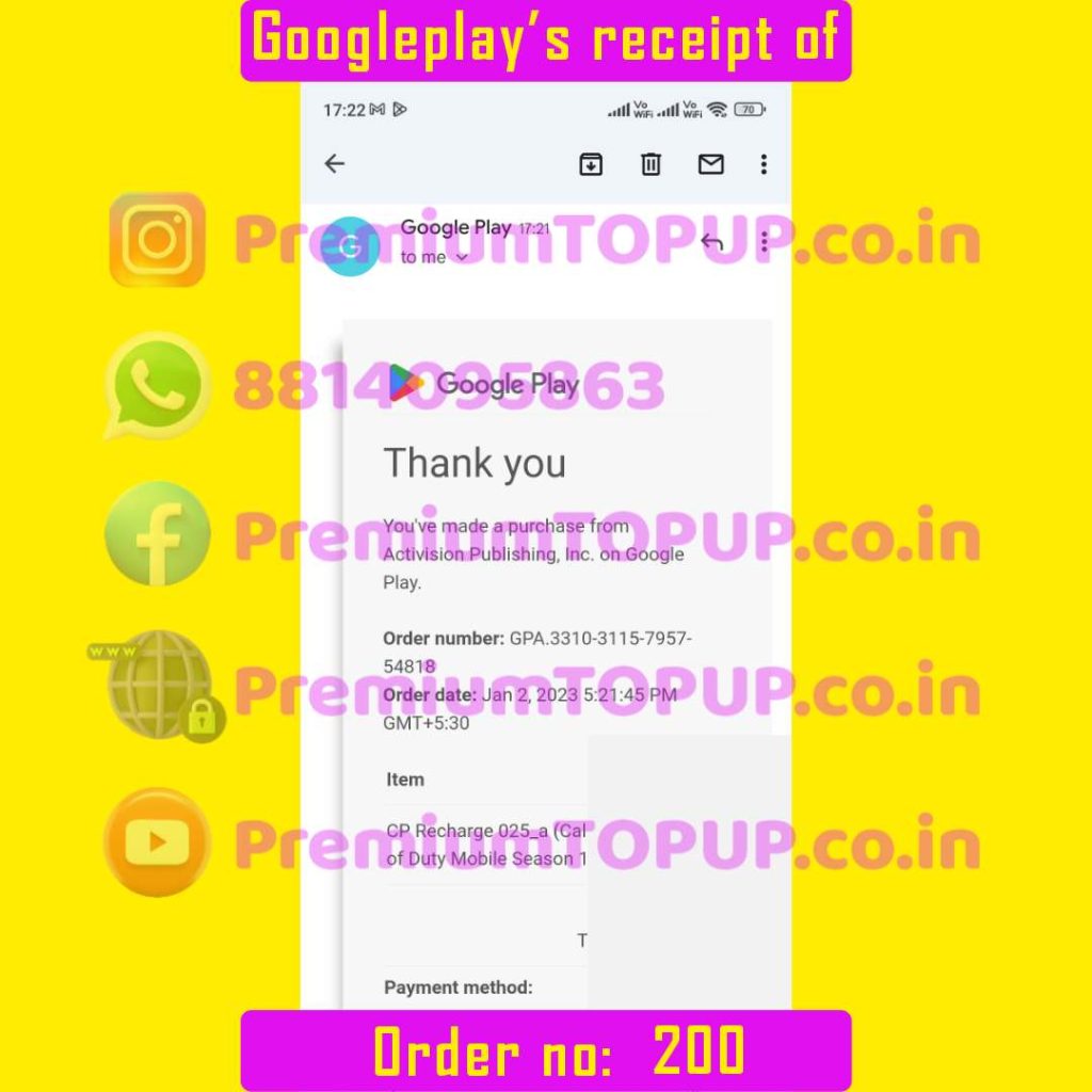 Order no : 201