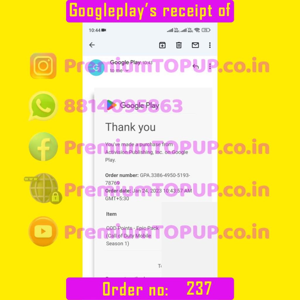 Order no : 237